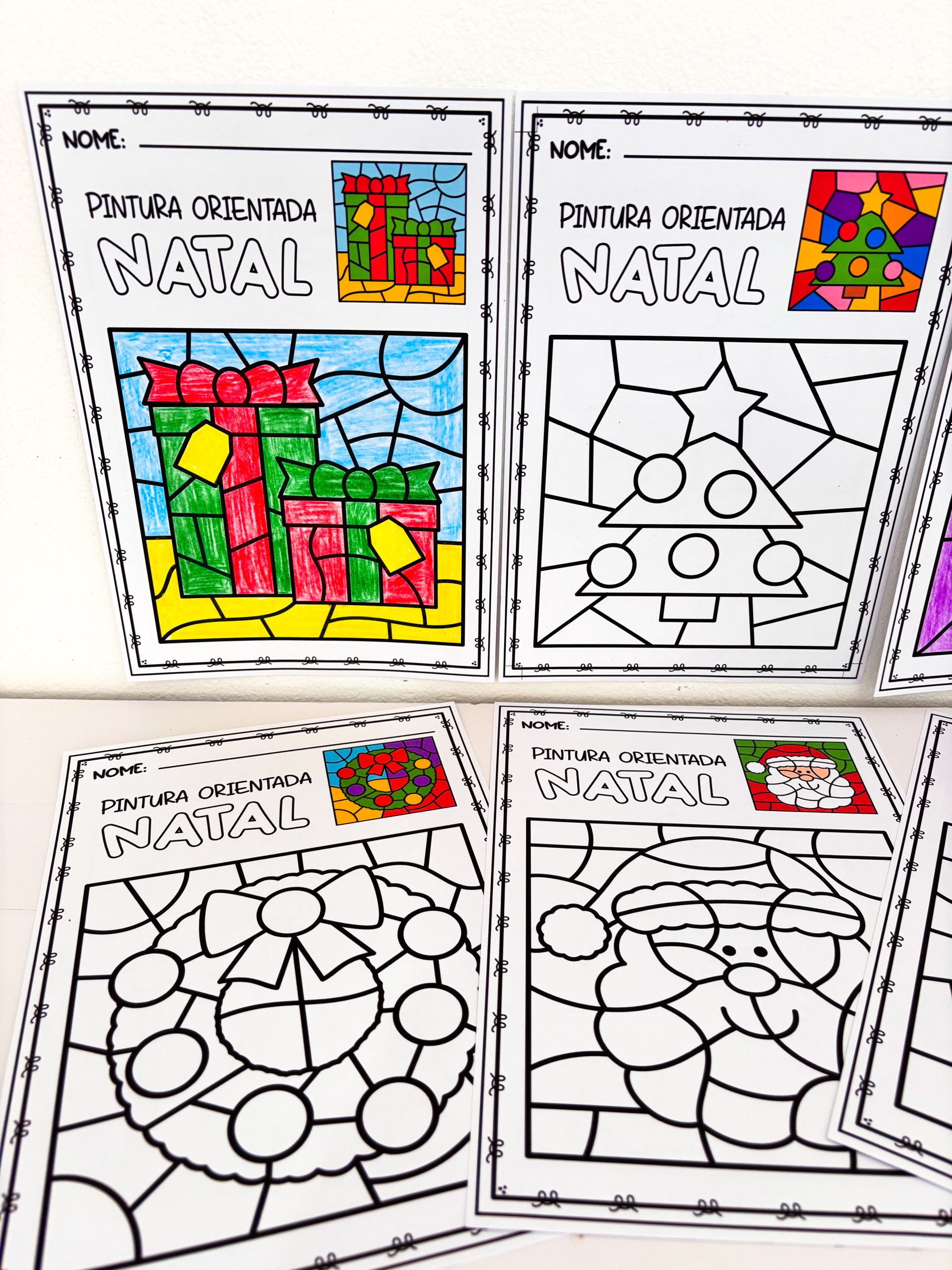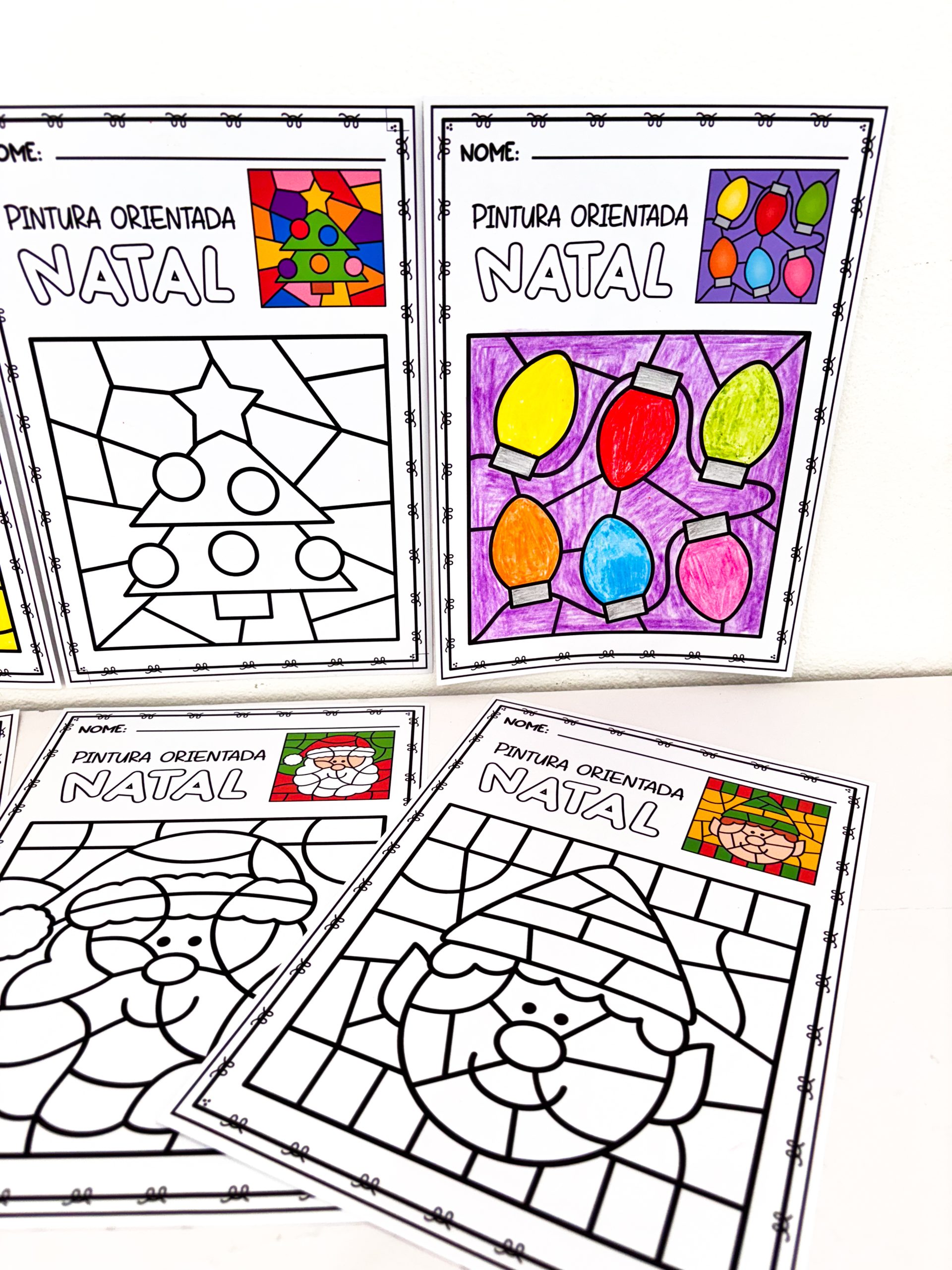 desenho colorido já vem na própria folha, servindo como