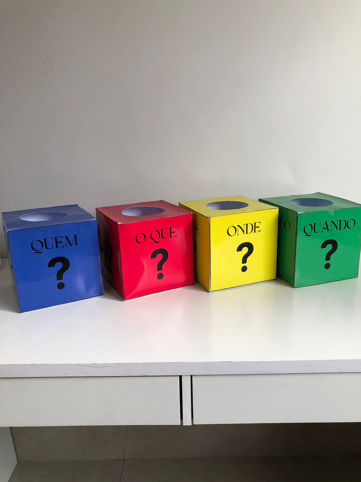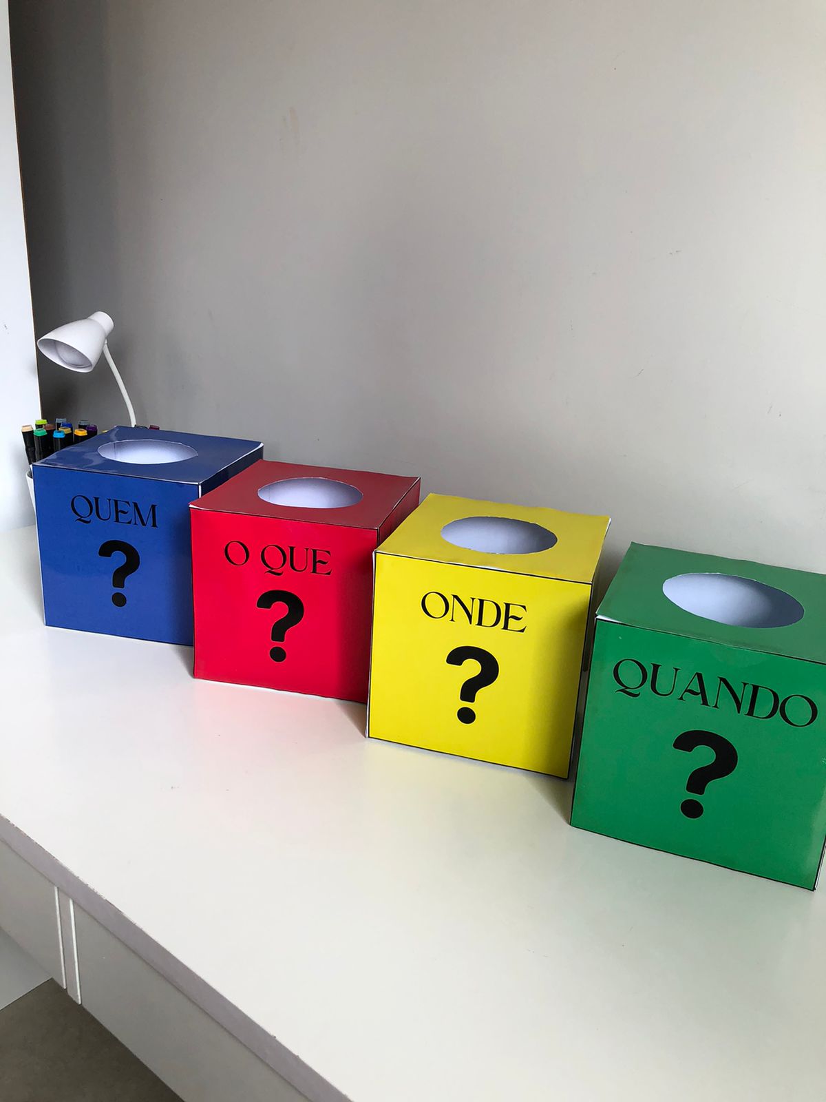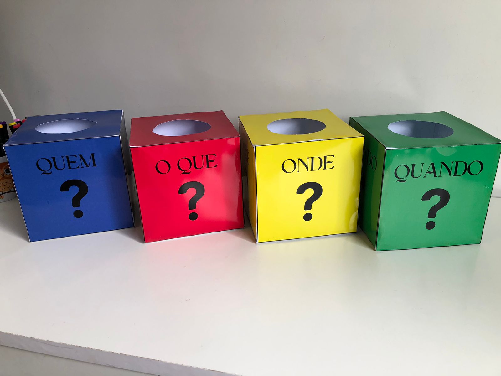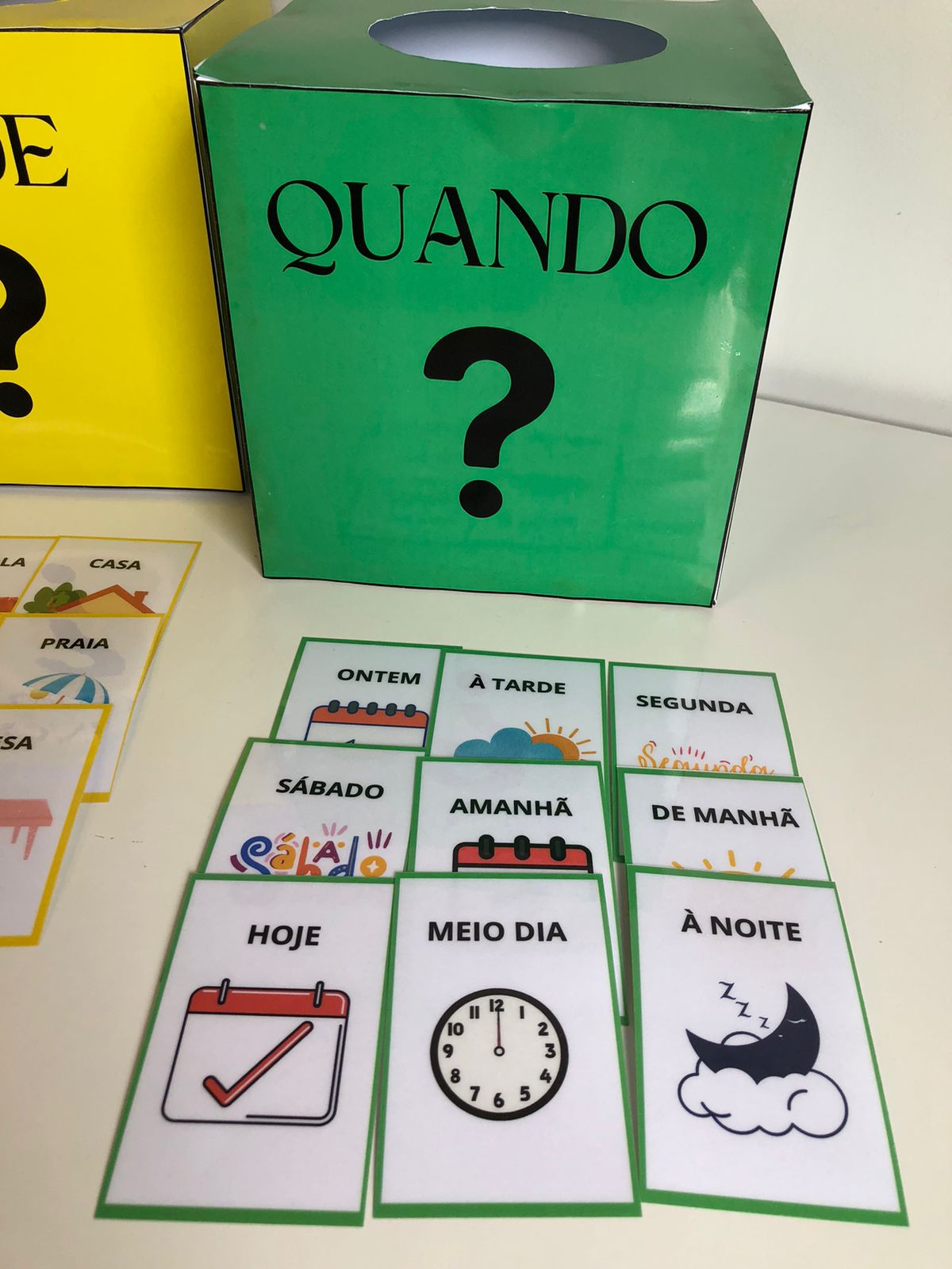 Com o Jogo de Formação de Frases, a criança retira um card de cada caixinha: