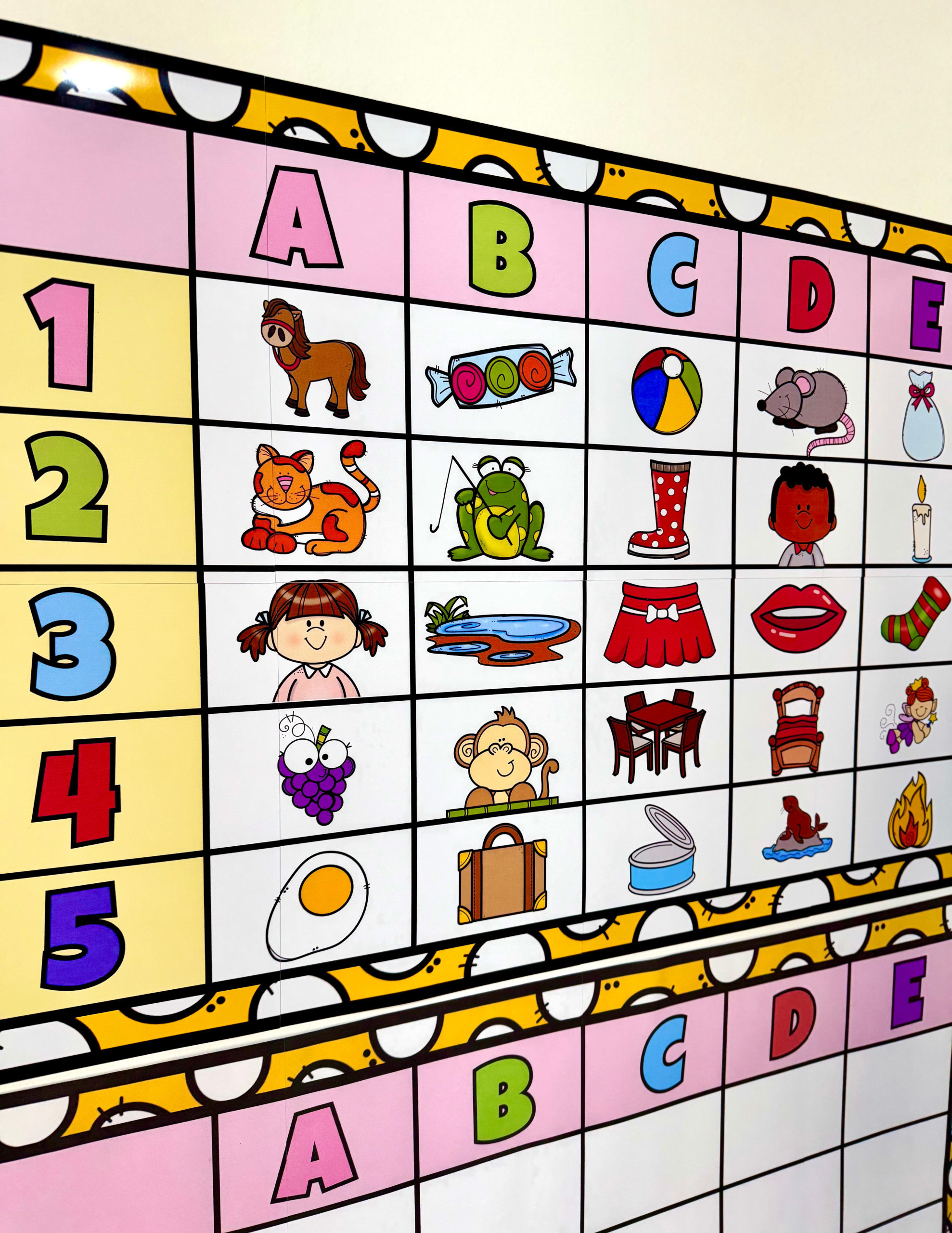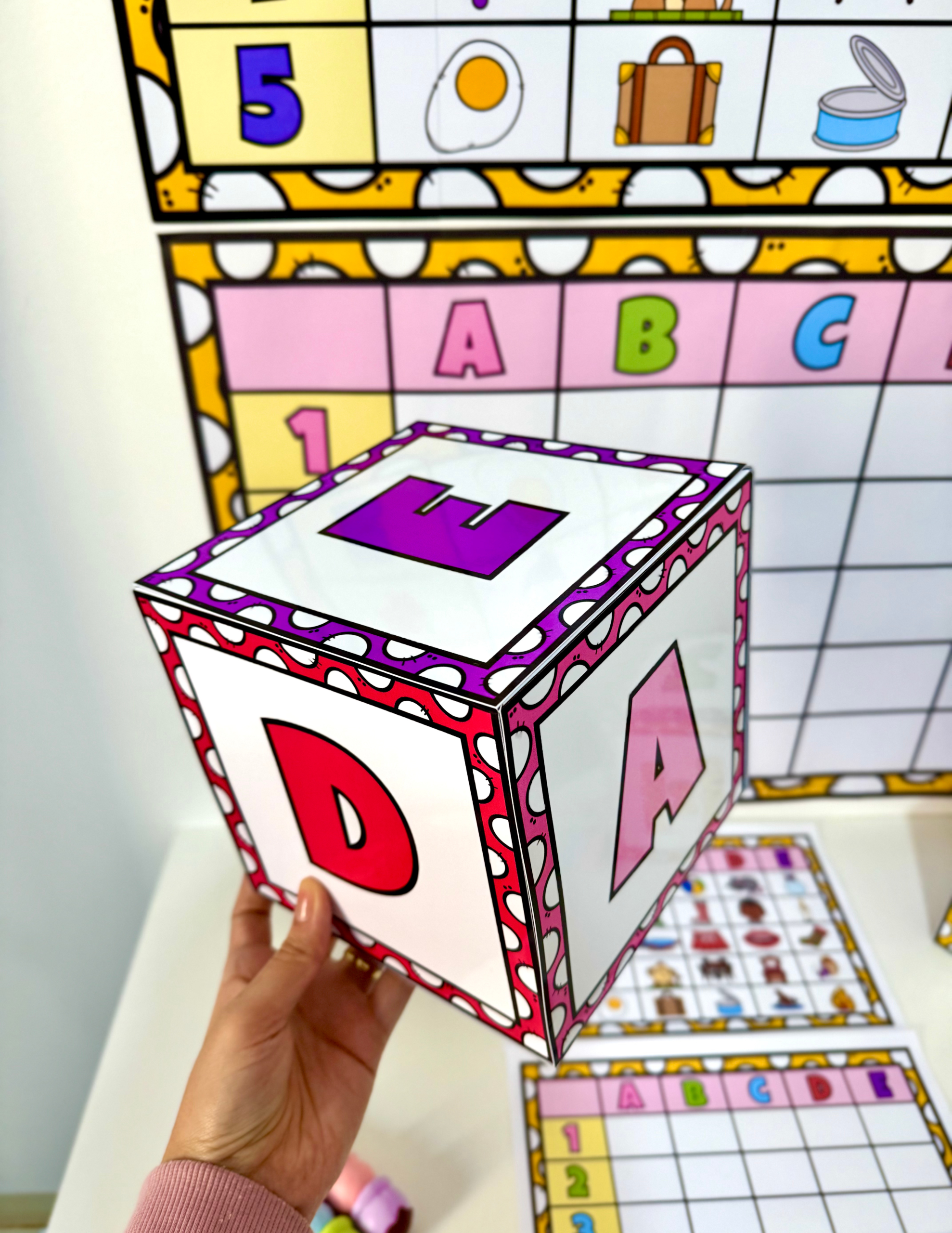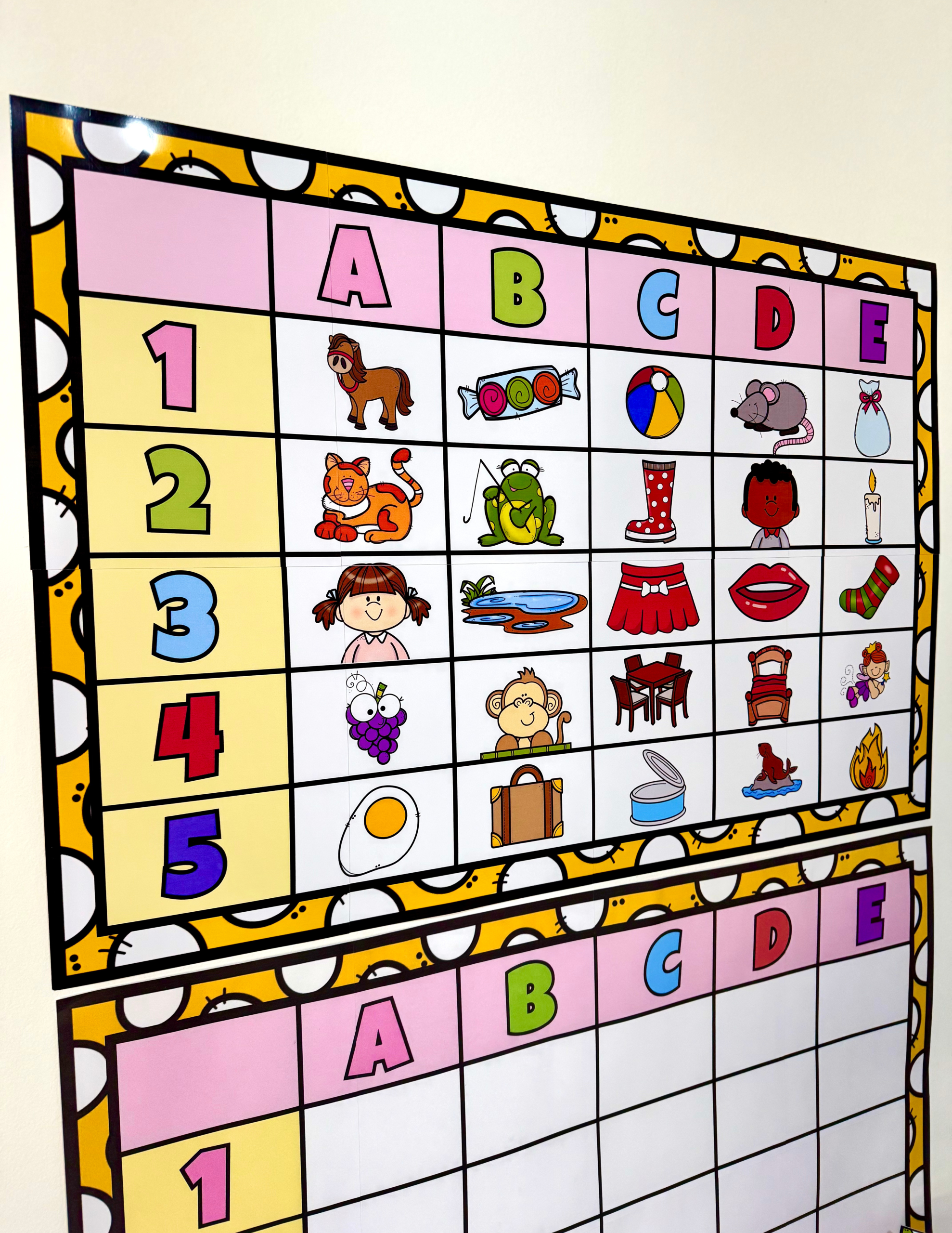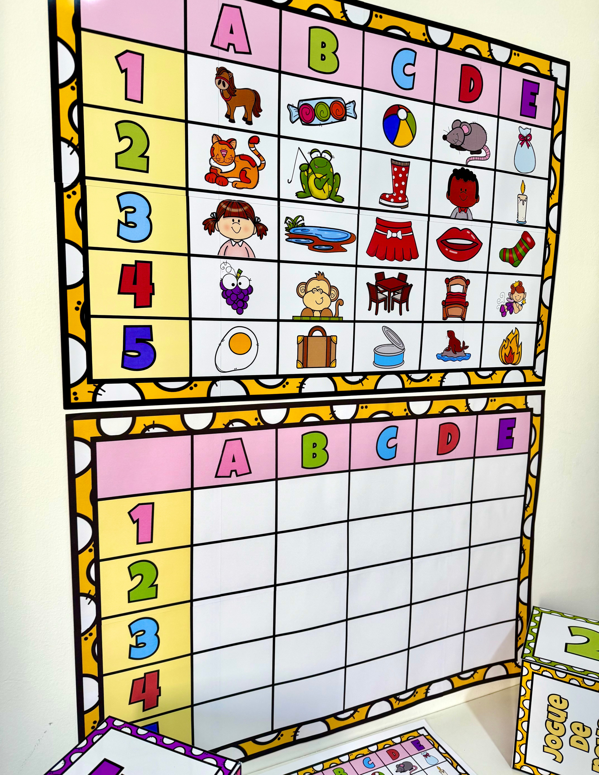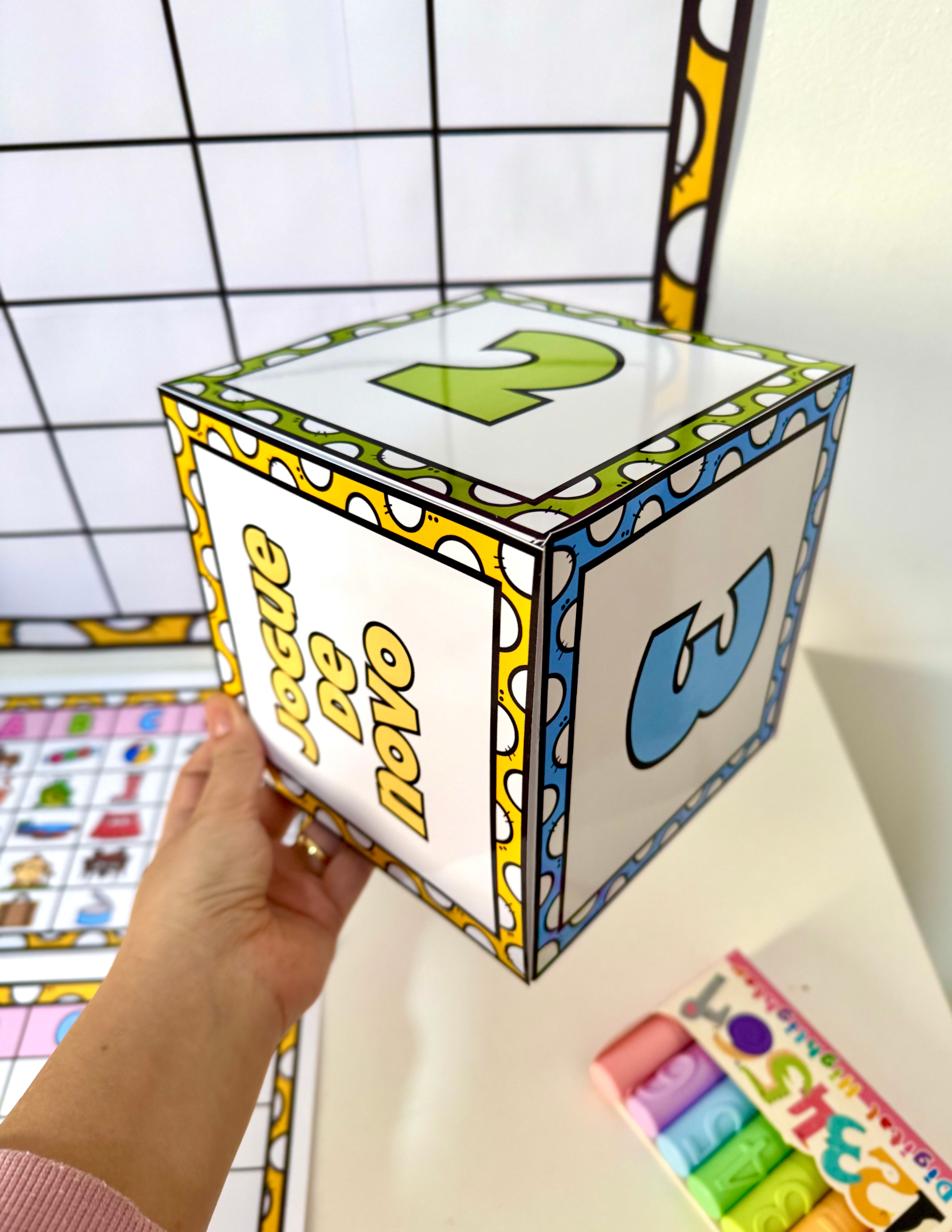 Nessa proposta a criança deverá jogar os dados 🎲, identificar a figura que se encontra na linha e na coluna sorteada 🔍 e realizar a escrita da palavra na tabela em branco. O material também acompanha folhas de registro na opção colorida e para colorir e as tabelas na opção A4. 🖍️📝 No total a tabela inclui 25 figuras diferentes. 🖼️