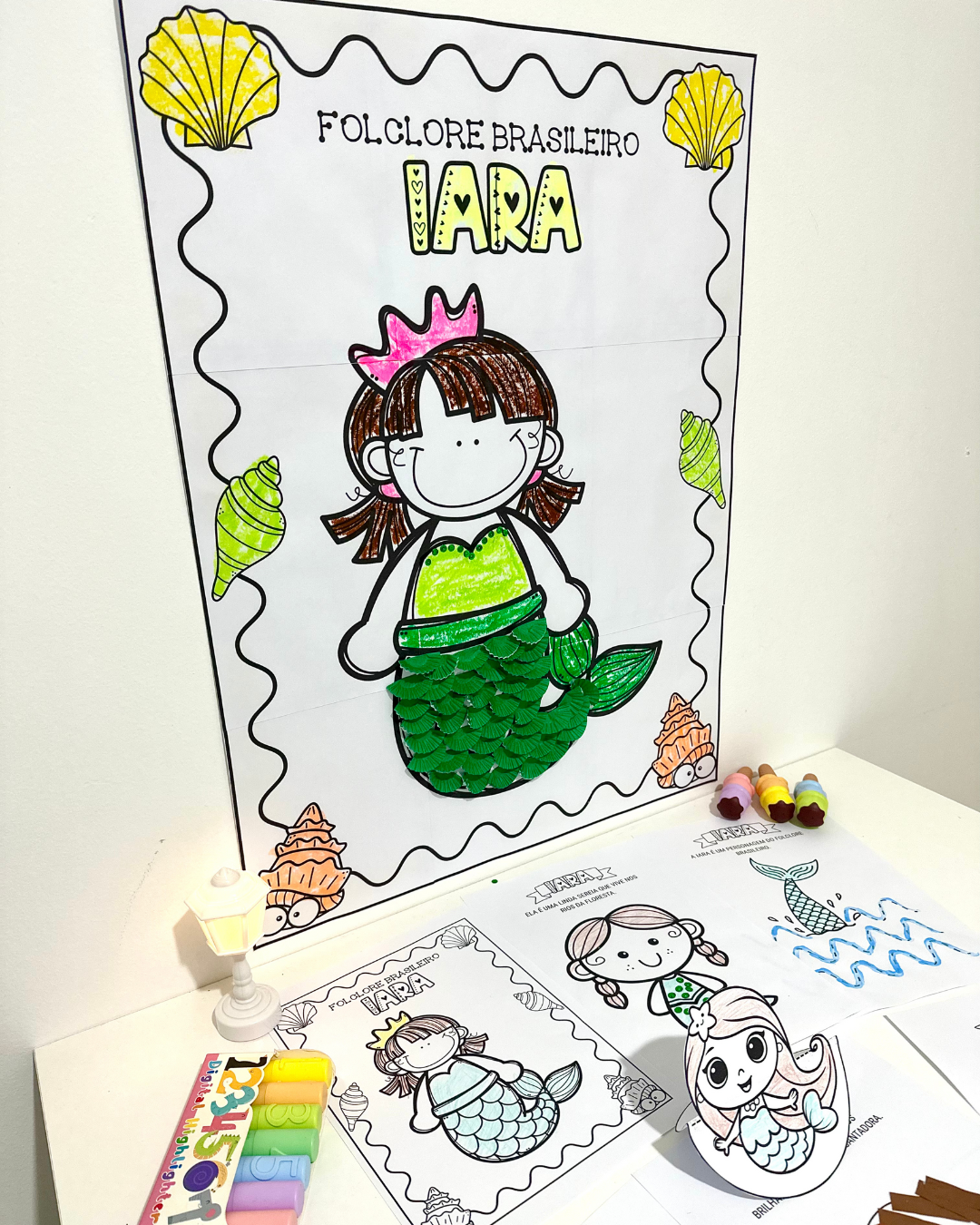 Kit de Cartaz colaborativo e atividades de Artes tema Iara – folclore. 🎨🧜♀️🌿