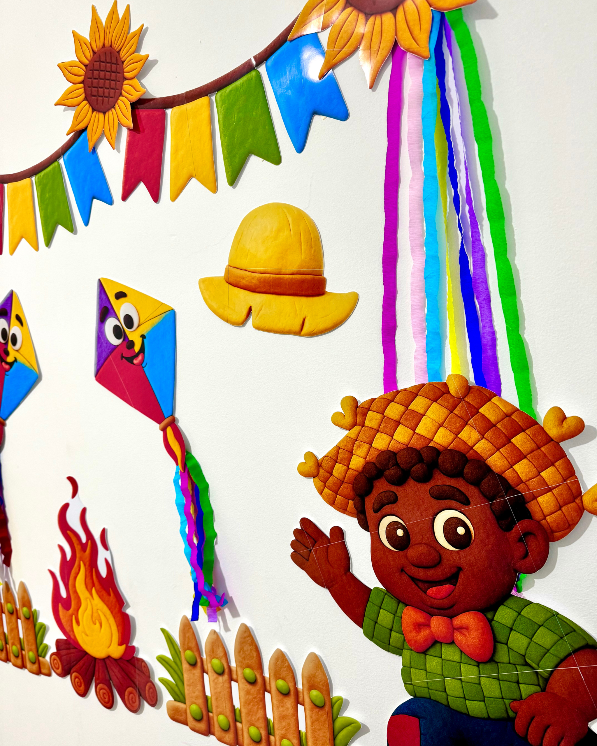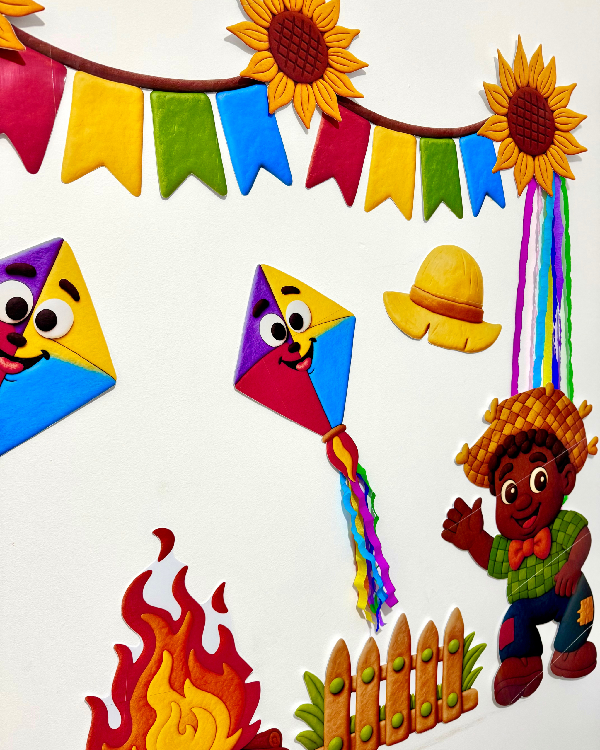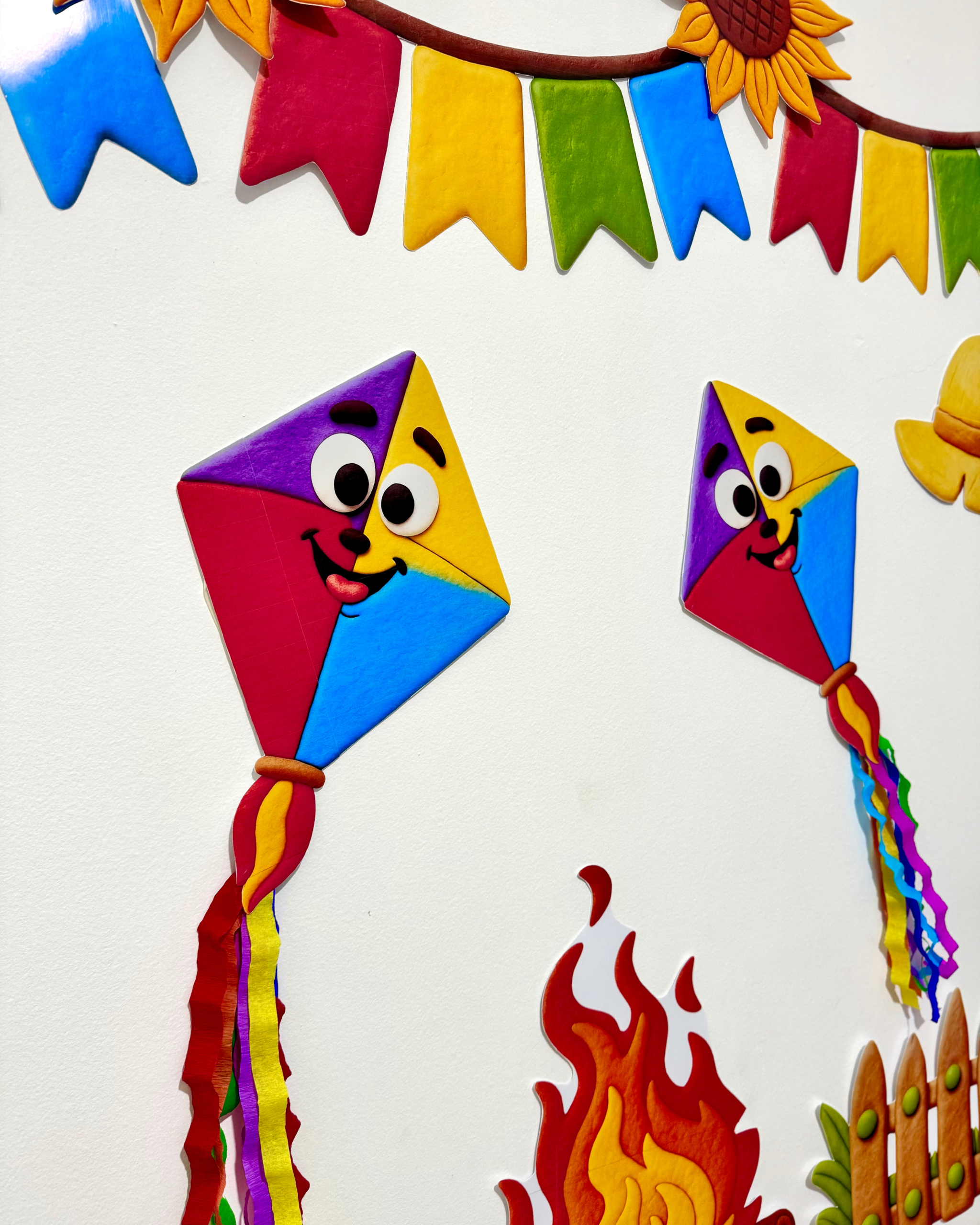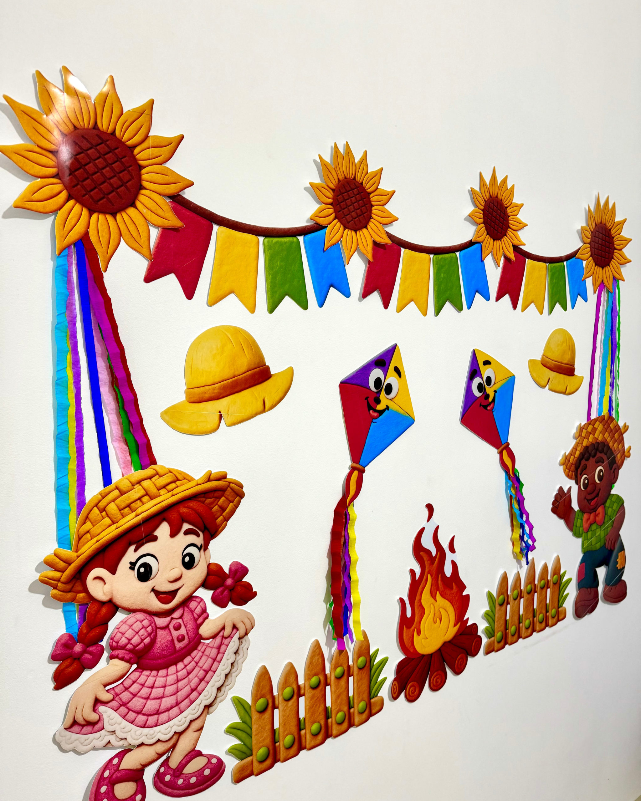 Proposta linda para decoração com elementos que fazem parte dessa época do ano. 🎨🌽🎈🔥