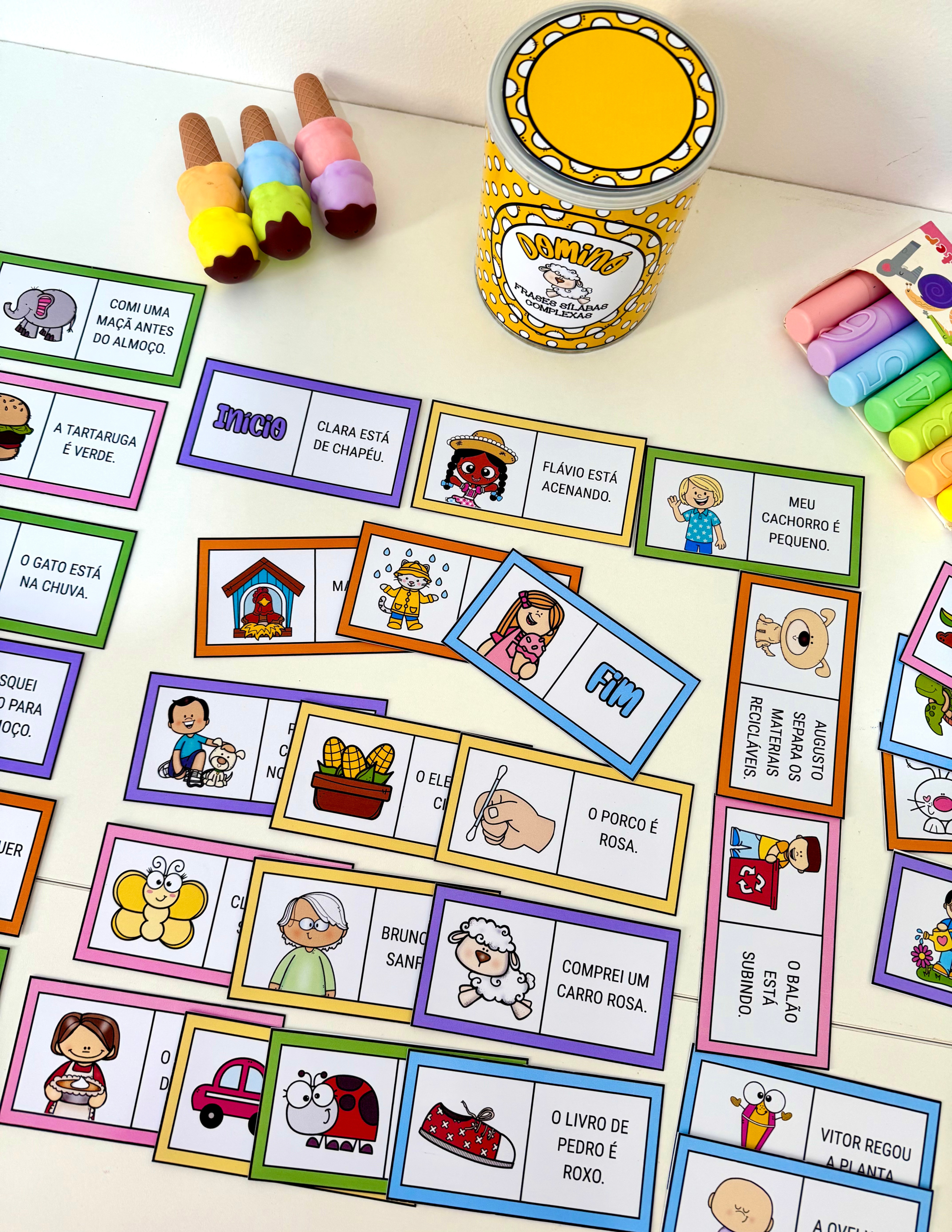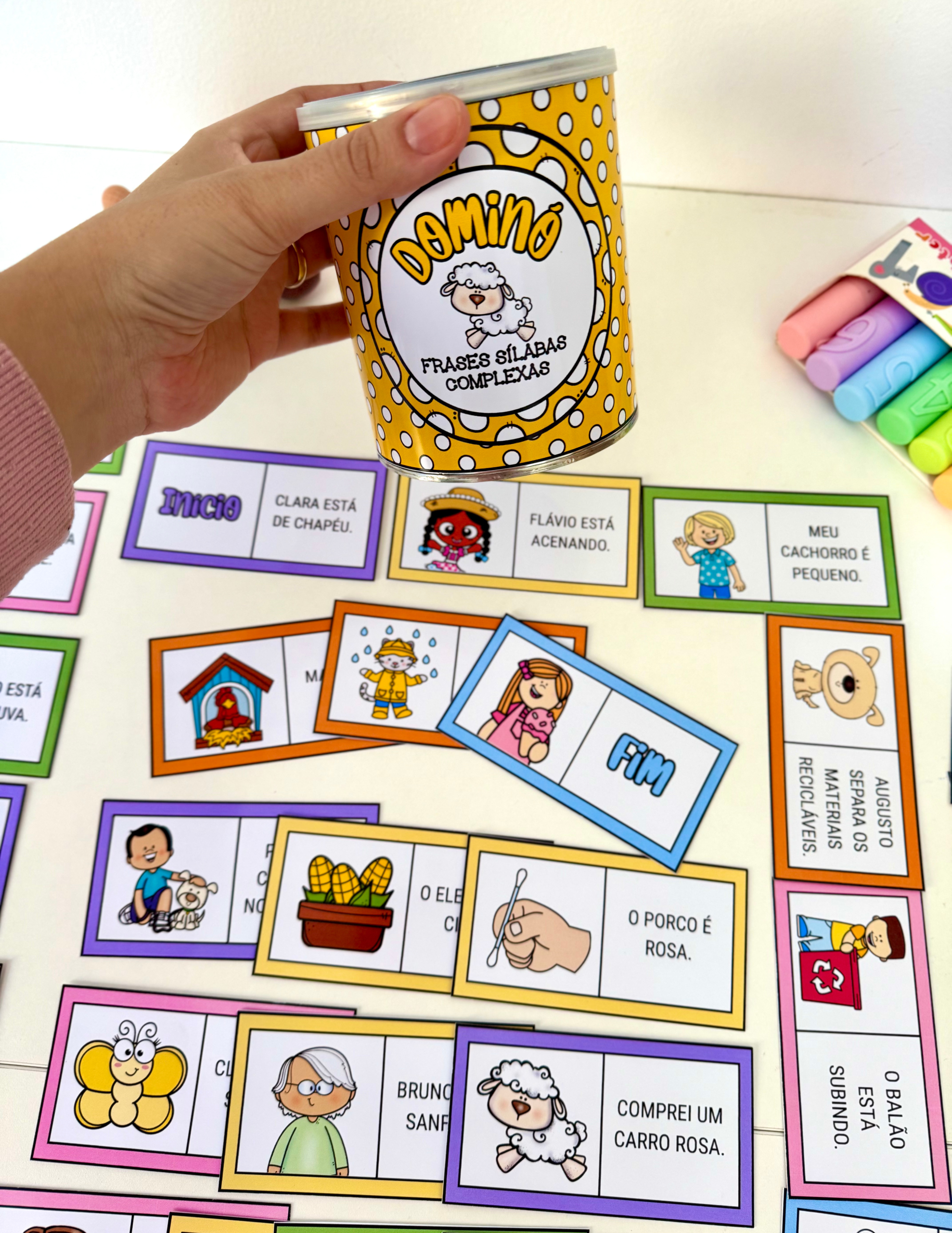 O material inclui arte para lata (400g) 🥫 e 30 fichas ilustradas. 🖼️🃏
