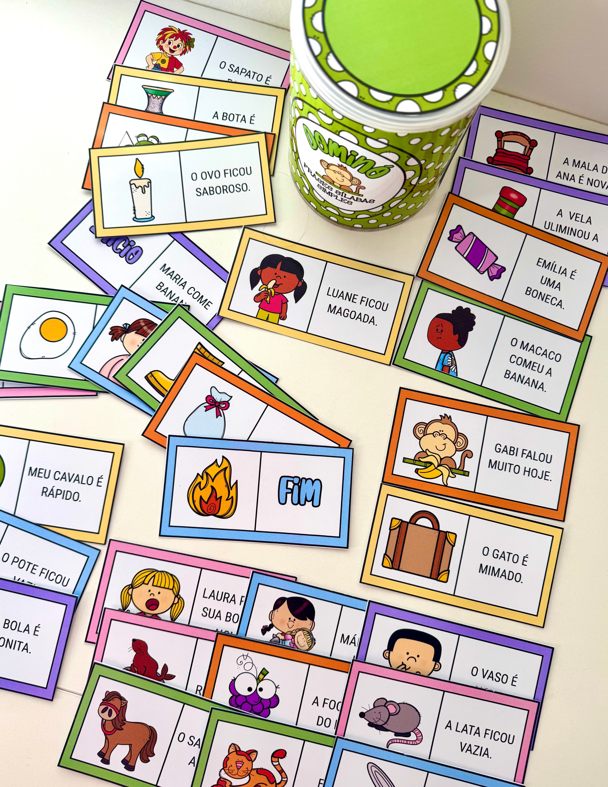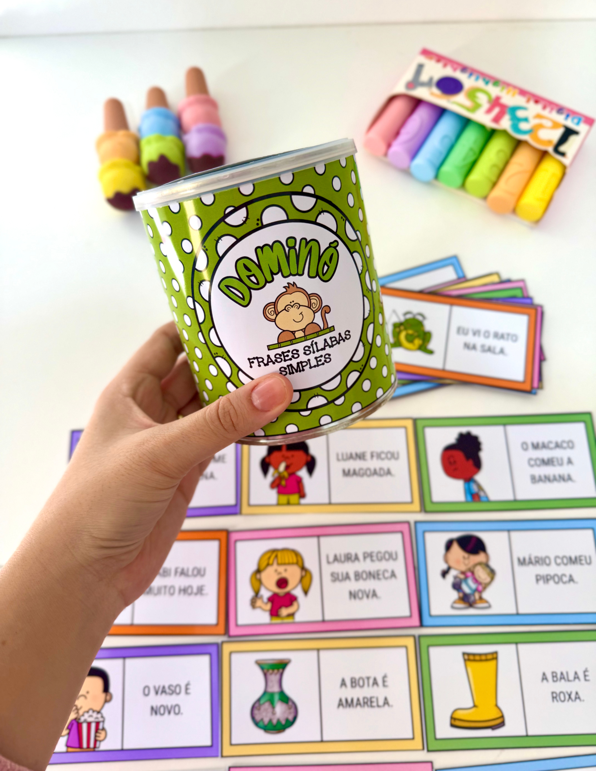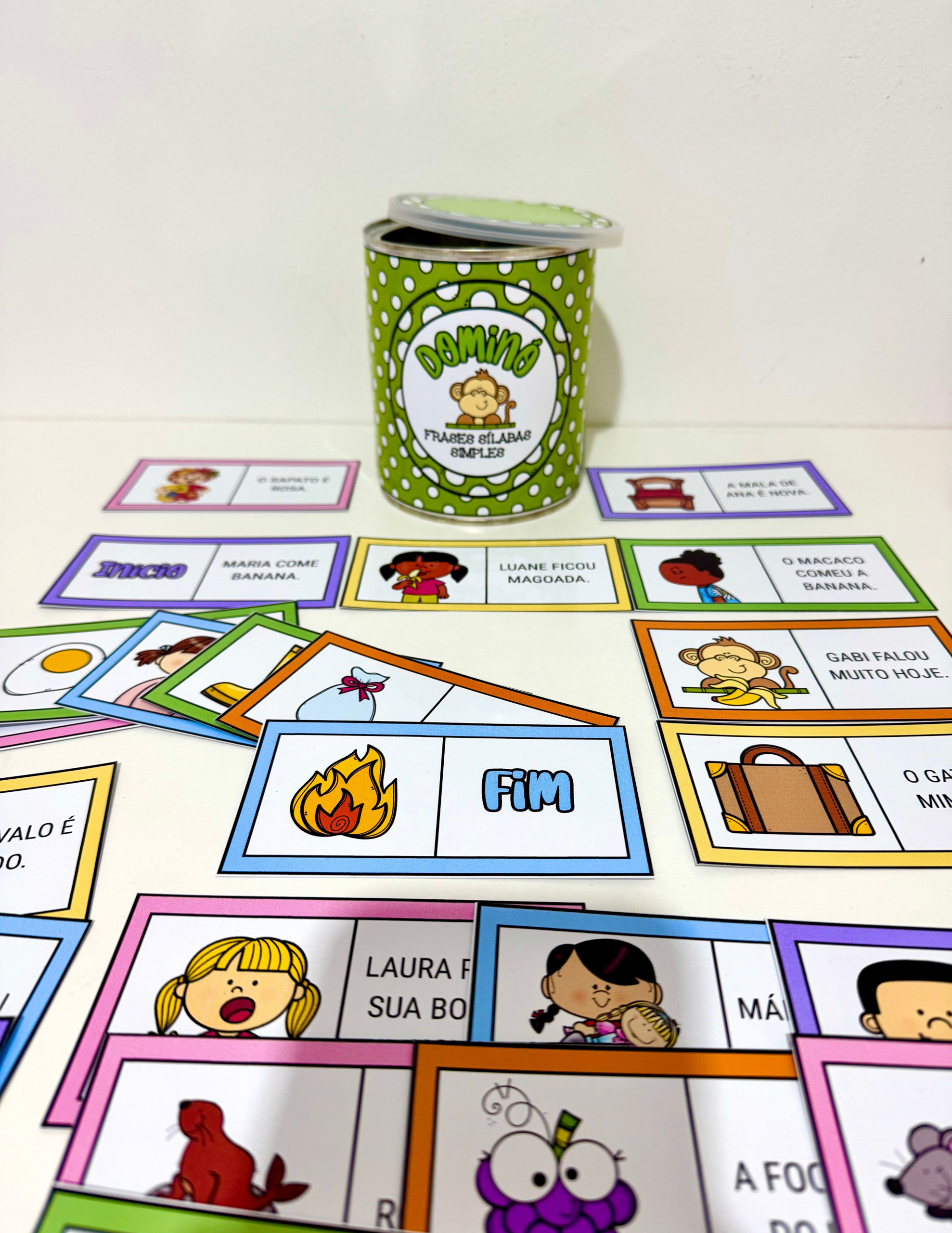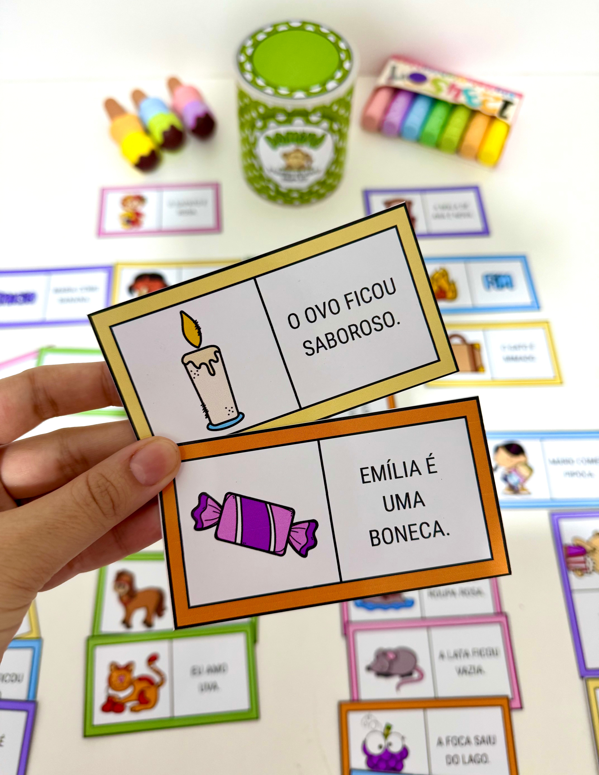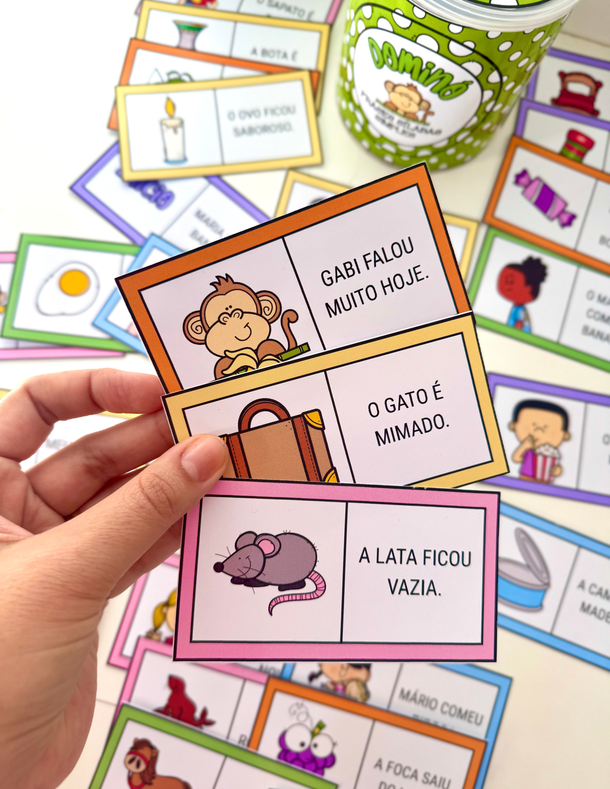 O material inclui arte para lata (400g) 🥫 e 30 fichas ilustradas. 🖼️🃏