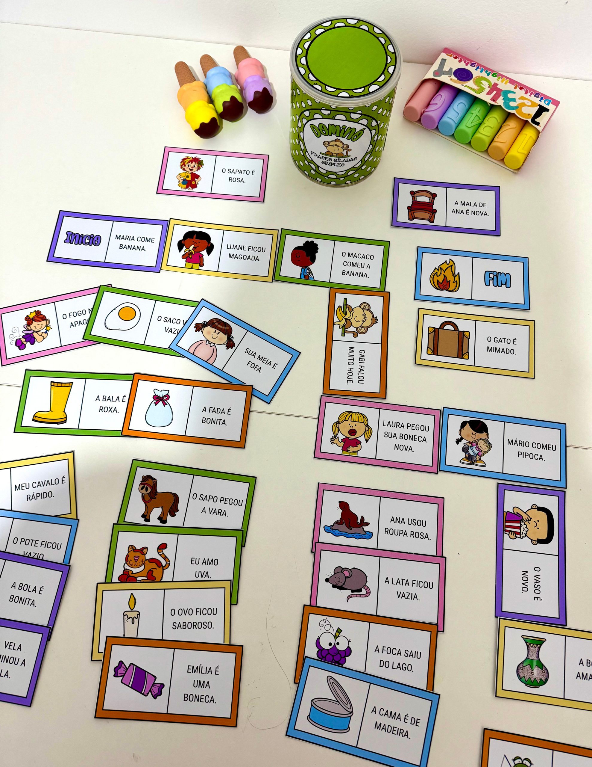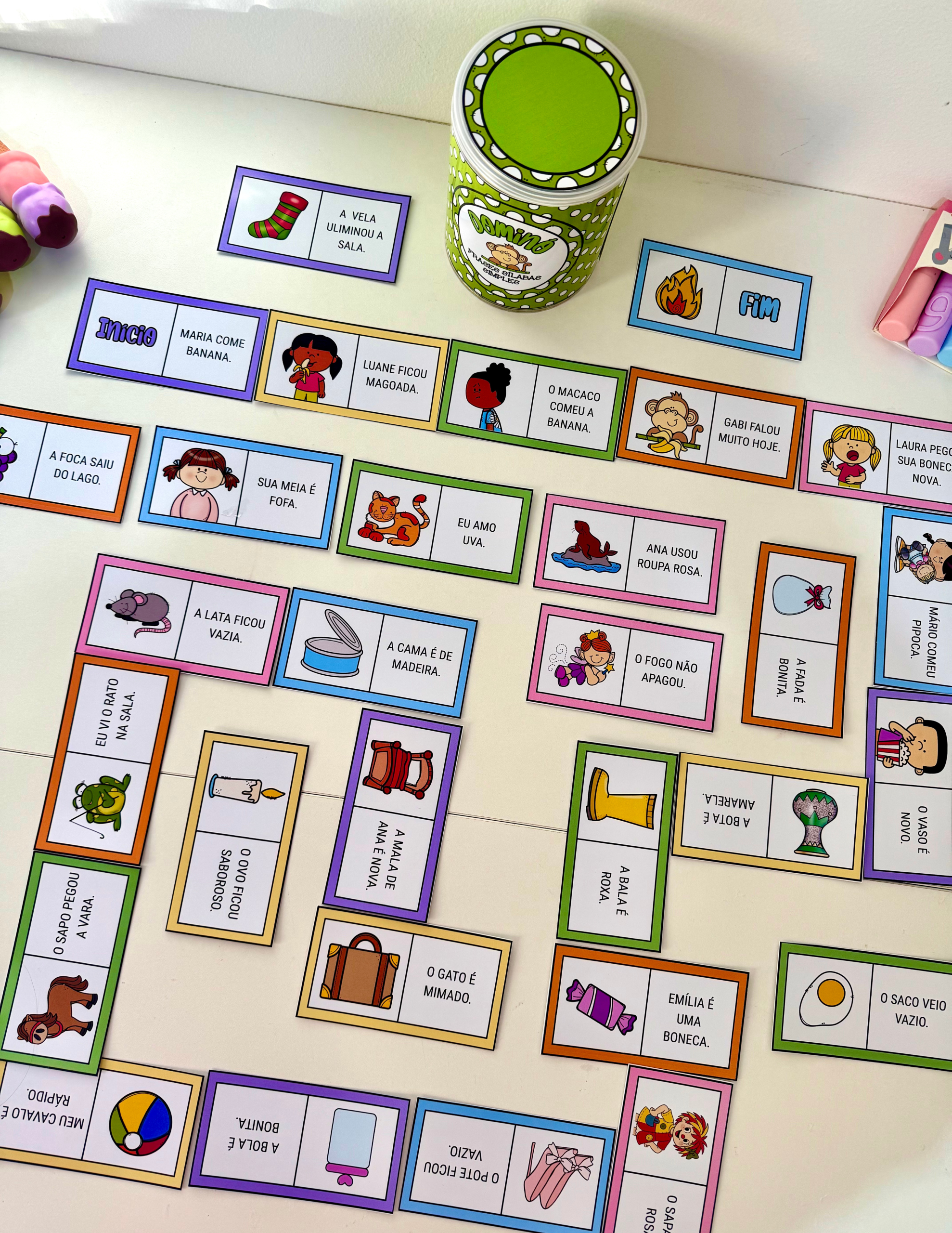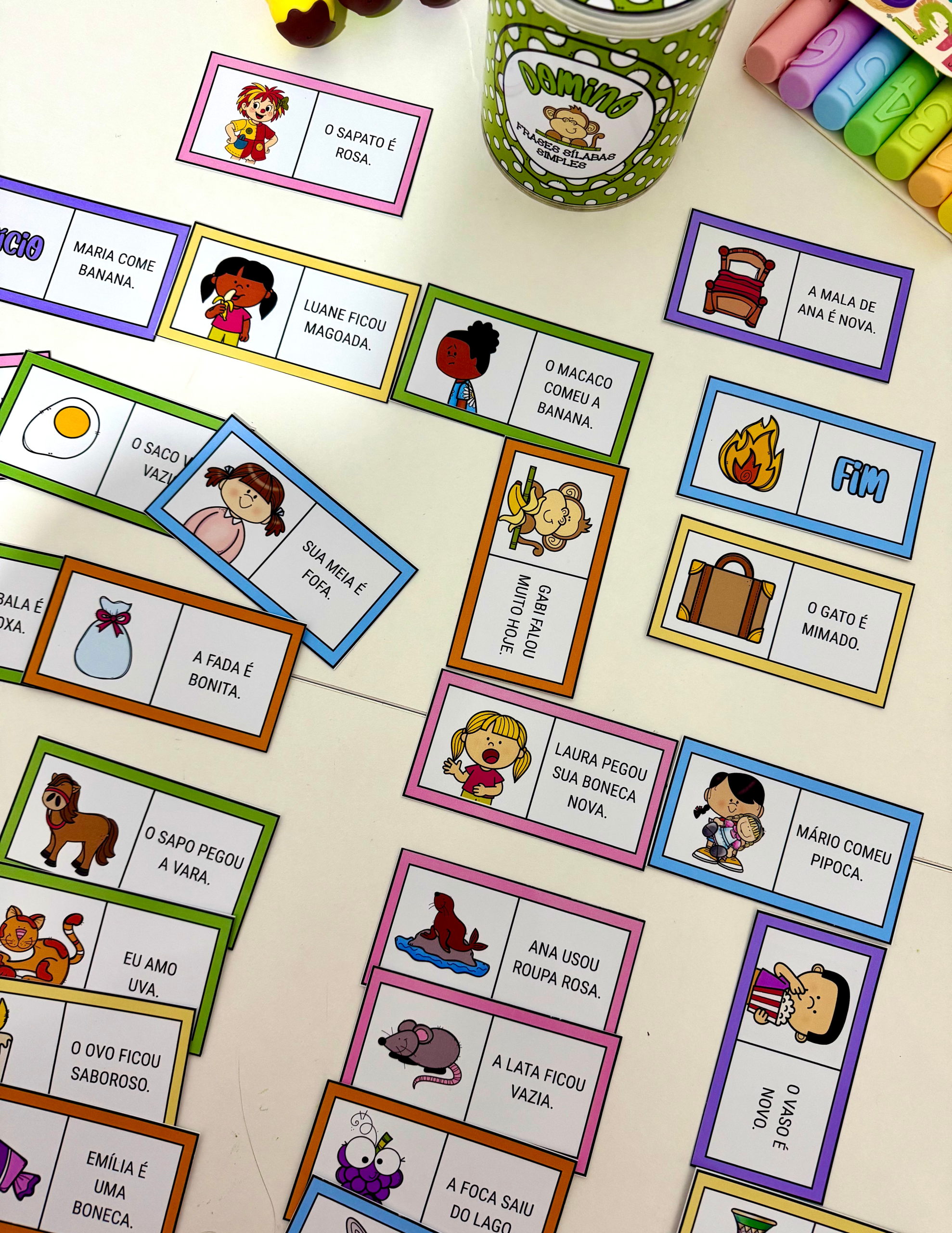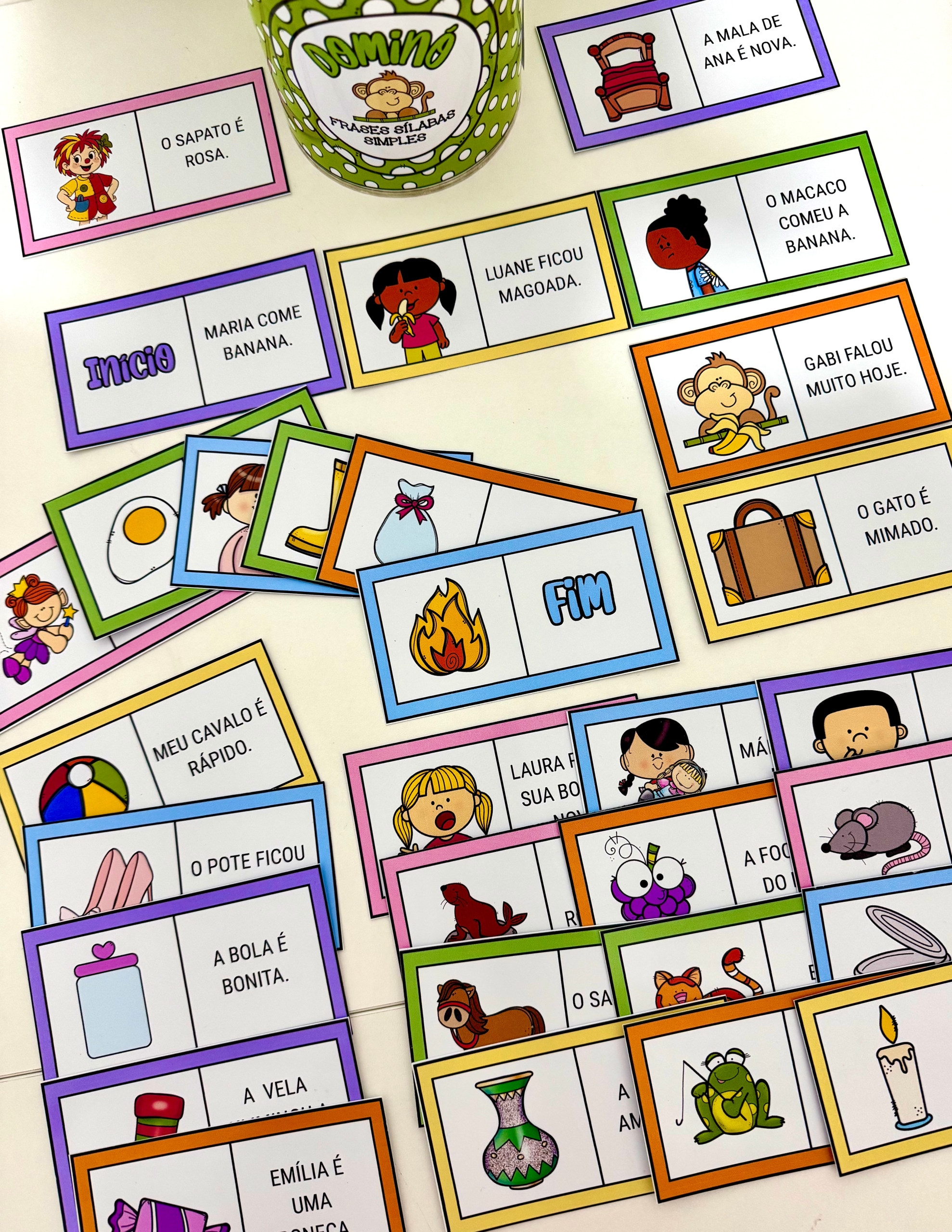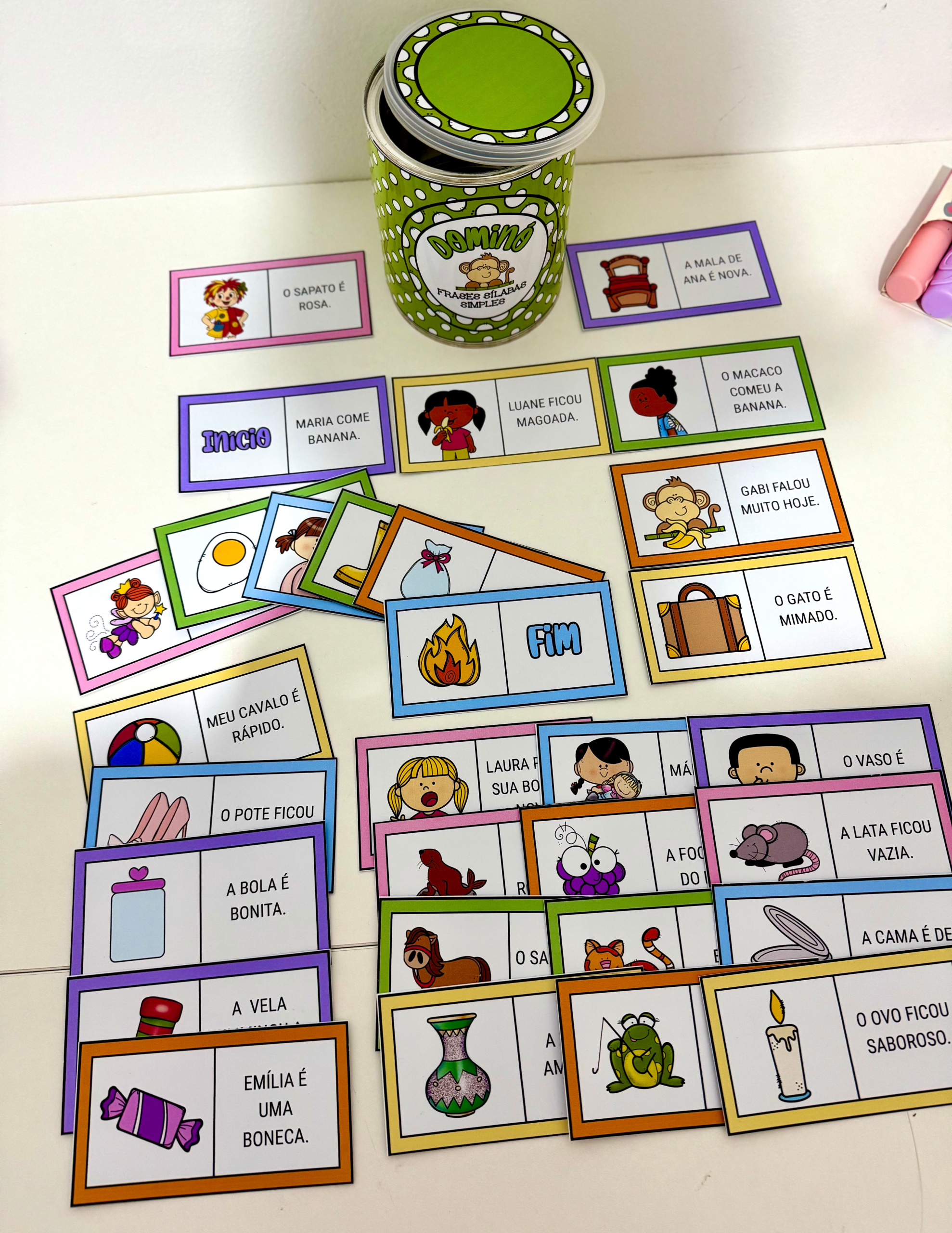 O material inclui arte para lata (400g) 🥫 e 30 fichas ilustradas. 🖼️🃏