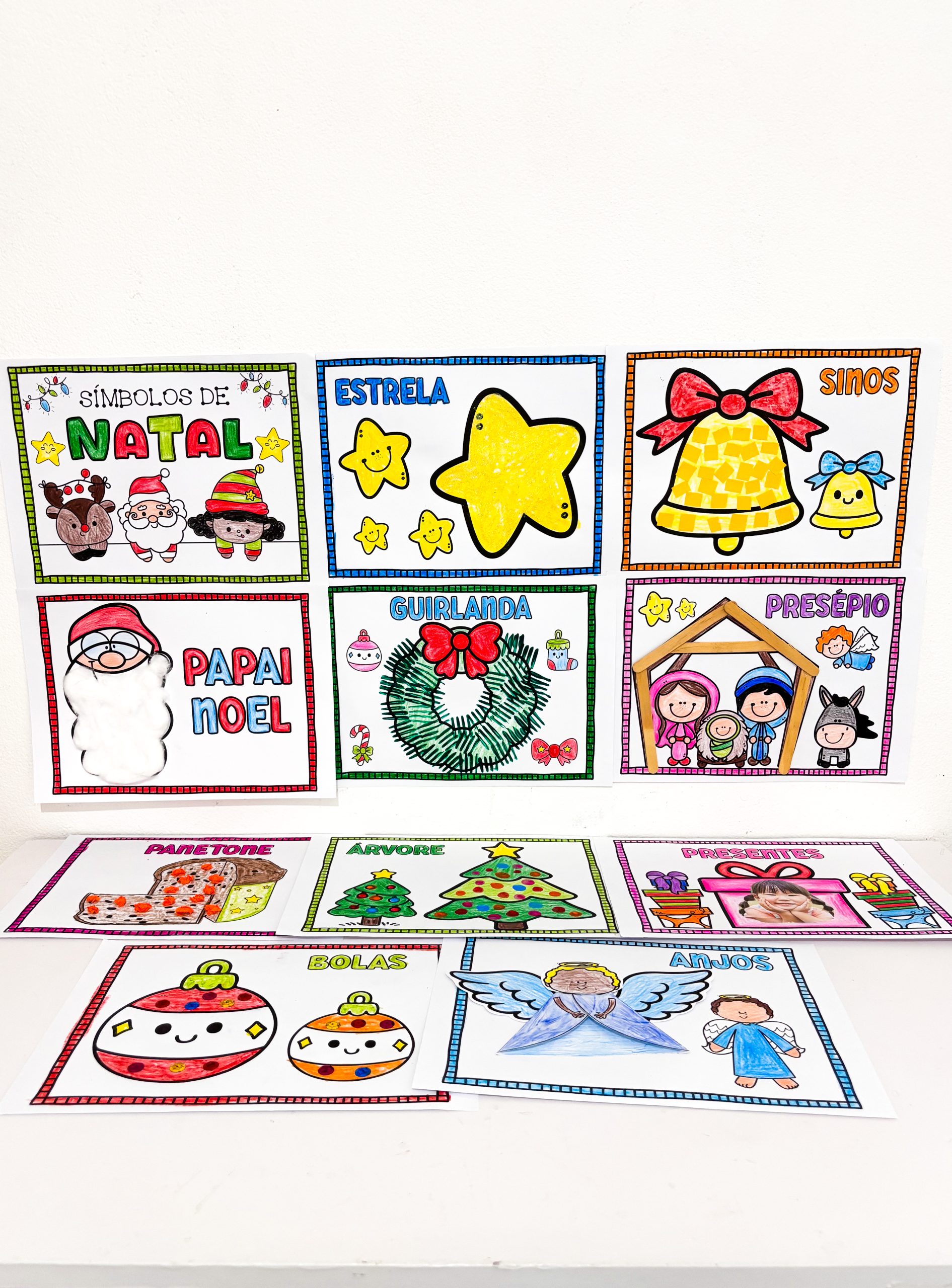 São 10 páginas com 10 símbolos natalinos, cheias de